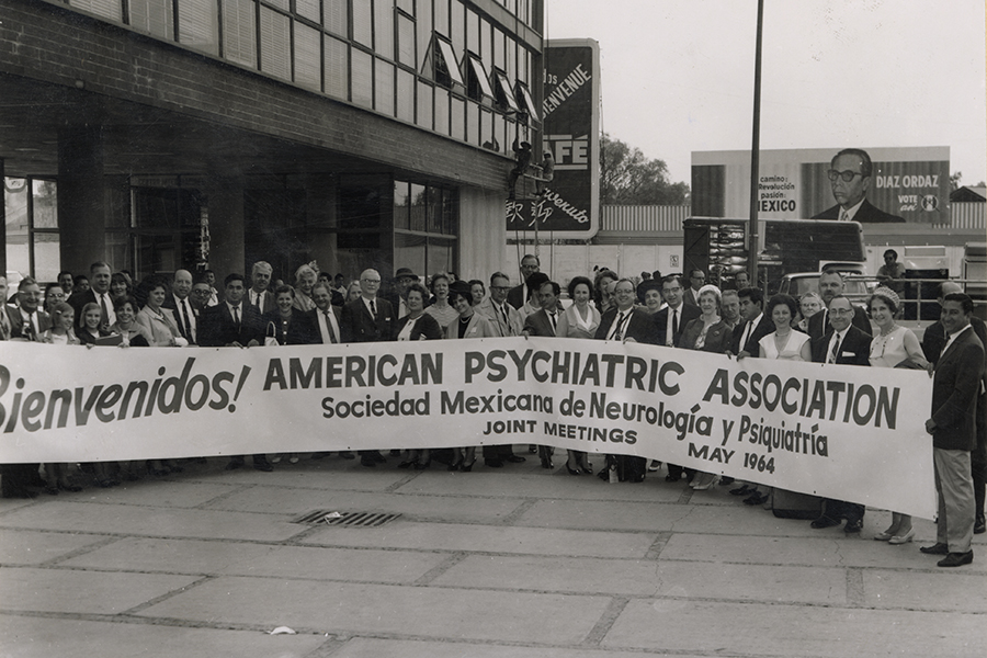¡Bienvenido! Reunión conjunta de la Asociación Psiquiátrica Americana y la Sociedad Mexicana de Neurología y Psiquiatría, Mayo de 1964