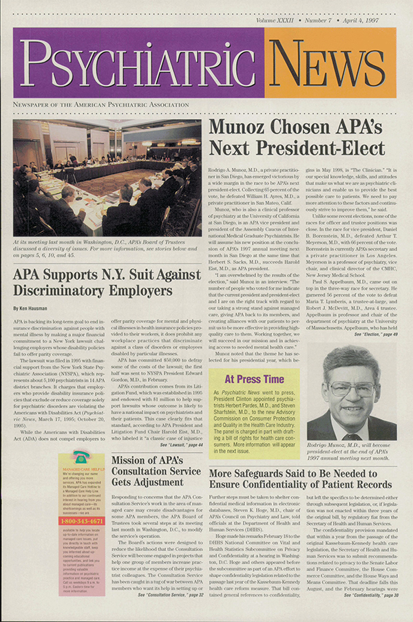 Psychiatric News, Volume XXXII, No. 7, April 4, 1997
