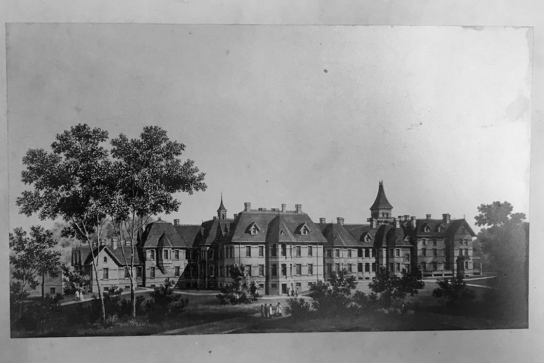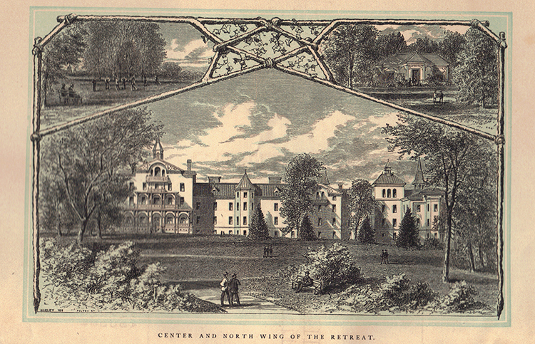 This gallery showcases the history of hospitals once used to house and treat patients suffering from psychiatric disorders. Before the introduction of medicine, doctors thought insanity was curable, preferably if patients were treated inside buildings that were constructed under strict layouts and design specifications. Thomas S. Kirkbride, M.D., the first secretary of the APA, wrote a book titled On the Construction, Organization and General Arrangements of Hospitals for the Insane (also known as the Kirkbride Plan), which influenced the architecture and management of state hospitals for over fifty years.