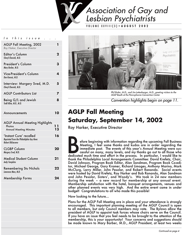 In 1960, the Association of Gay and Lesbian Psychiatrists (AGLP) informally originated when gay and lesbian members of the APA met during that year's Annual Meeting. Following the APA's declassification of homosexuality as a mental disorder in 1973, the Caucus of Gay, Lesbian, and Bisexual Members of the American Psychiatric Association was officially founded (now the LGBTQ+ Caucus).